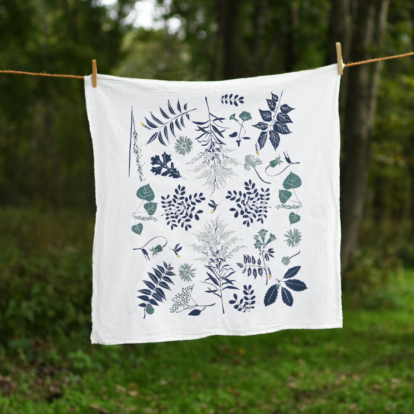 2. Kitchen tea towel made with eco-friendly flour sack in the USA, featuring botanical Air Wildflowers artwork by June & December artist Katie Forte