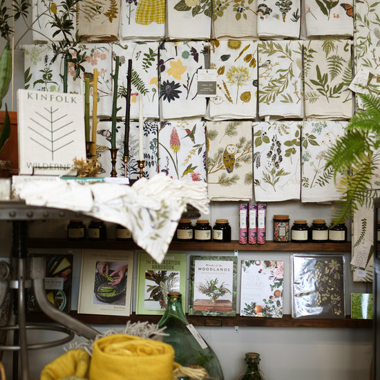 Explore our boutique that features a curated collection of nature-inspired works from like-minded artists near and far. Or shop our line of goods in person right from our studio shelves, where we design, make, prepare, and ship orders to stores + customers across the globe.