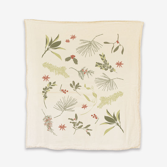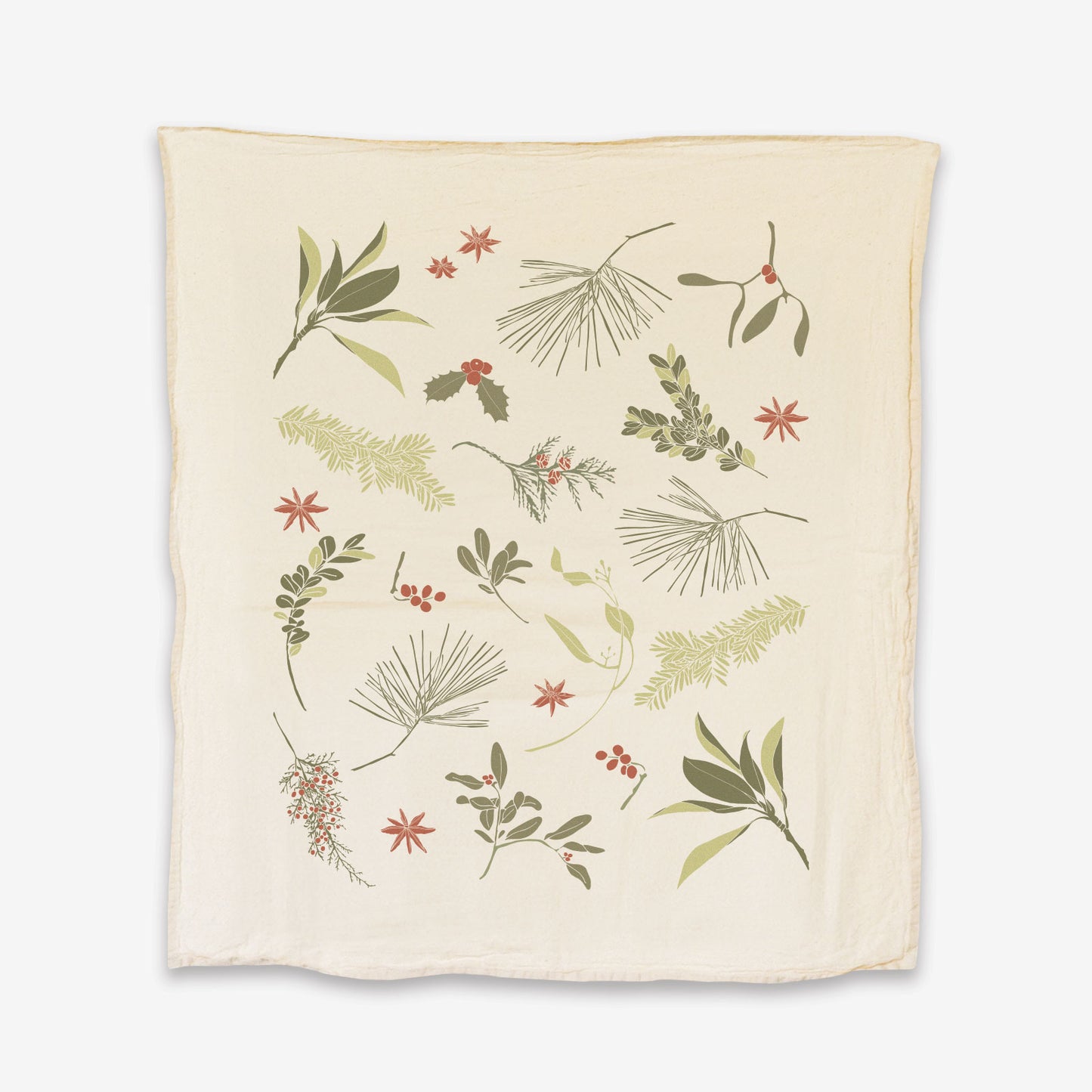 Inspired by the clippings of boughs and berries during the holidays, this winter sprigs design will work year-round in your kitchen. Screen printed on flour sack cotton to preserve its uniquely soft, absorbent and durable nature, this towel is machine washable and safe to bleach allowing it to hold up for everyday use.